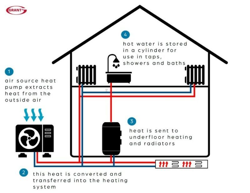 Bellow shows a simplified example of an airsource heatpump. a specialty of the BKR team.